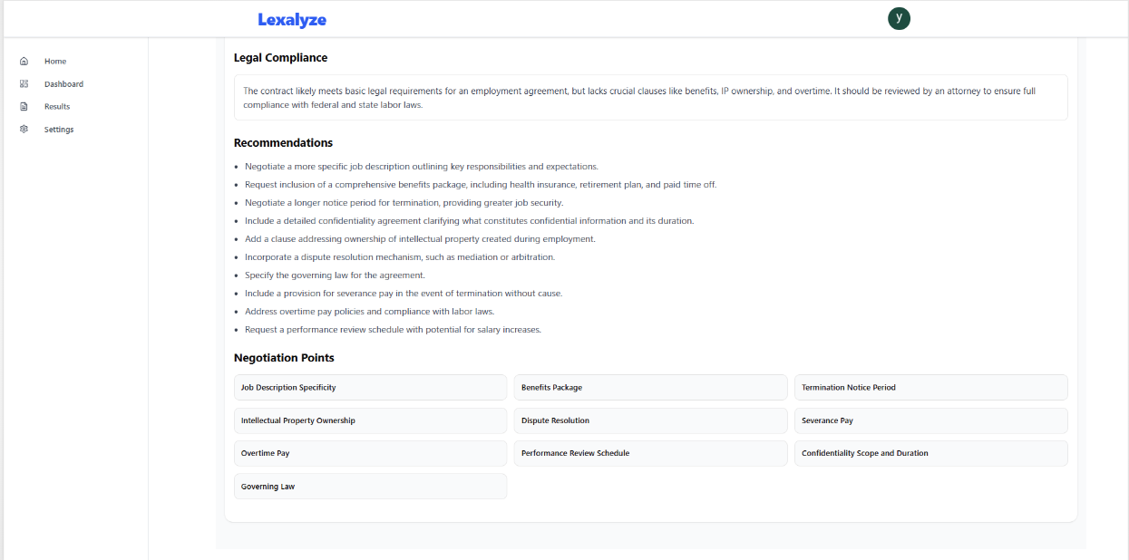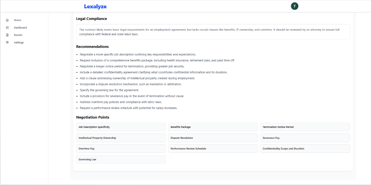 • AI-generated suggestions for contract improvements